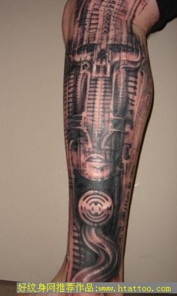腿部很真实的机械元素面具图案纹身这样的纹身_腿部纹身图案大全_纹身图吧