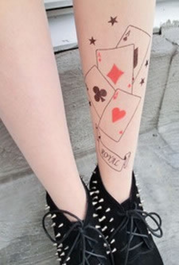 女生腿部四种花色的老A图案纹身扑克牌、五角星_腿部纹身图案大全_纹身图吧