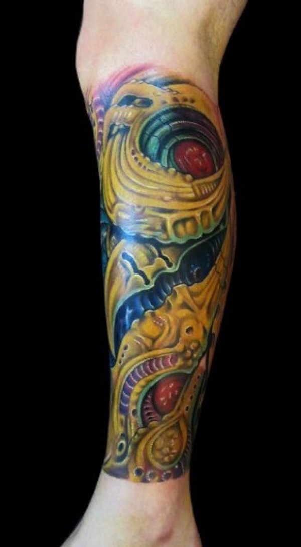 腿部彩绘机械图案纹身欣赏黄金机械纹身图案_腿部纹身图案大全_纹身图吧