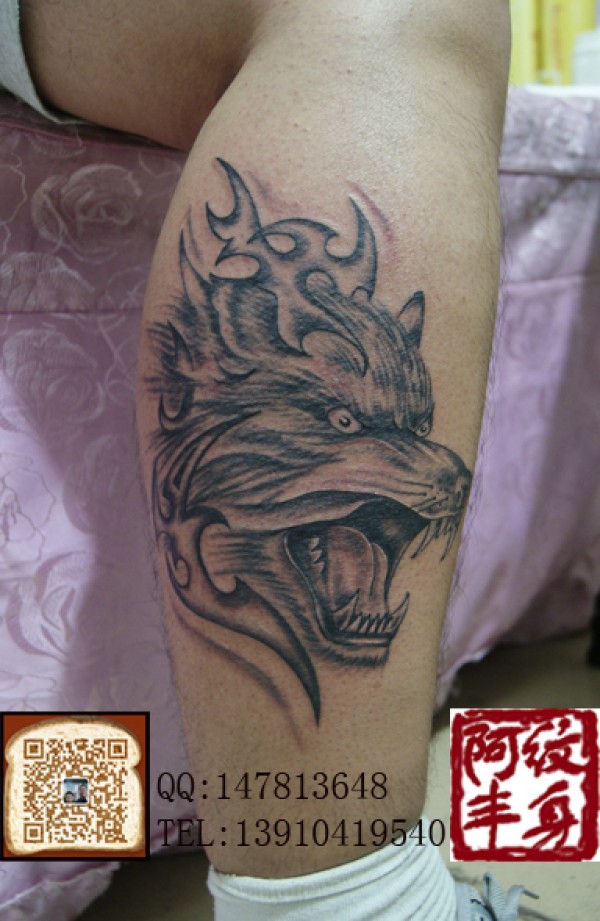 腿部狼头刺青图,阿丰纹身馆得意作品喜欢这款_腿部纹身图案大全_纹身图吧