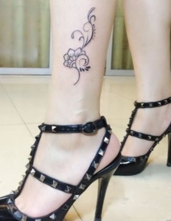 纤细小腿上的小图案曲卷图腾纹身素色花藤小图_腿部纹身图案大全_纹身图吧