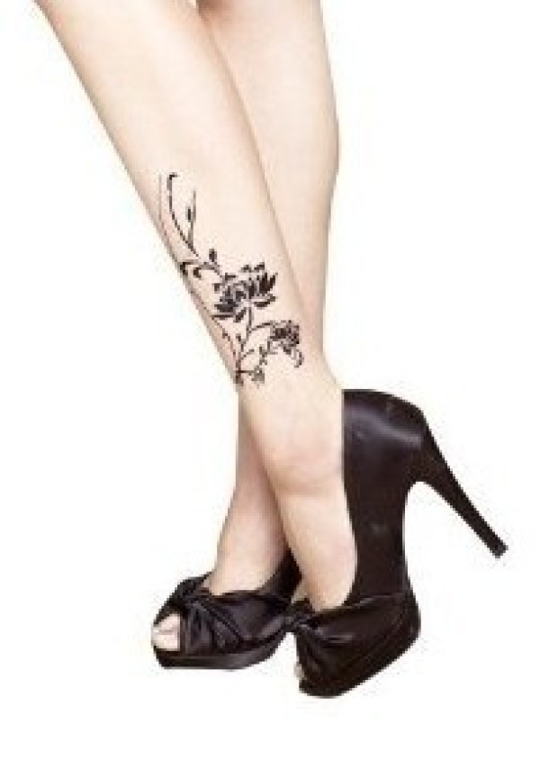靠近脚裸处的可爱小图案纹身非常清秀的素色花_腿部纹身图案大全_纹身图吧