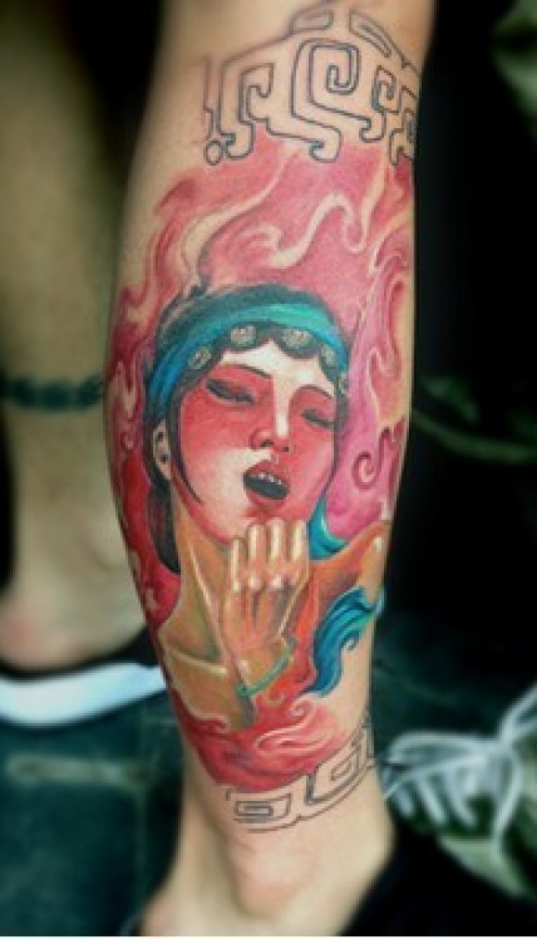 腿部彩色精灵纹身图_腿部纹身图案大全_纹身图吧