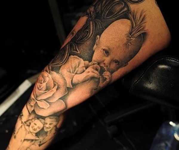 全家福肖像图案纹身把全家福纹在身上,走到哪_腿部纹身图案大全_纹身图吧