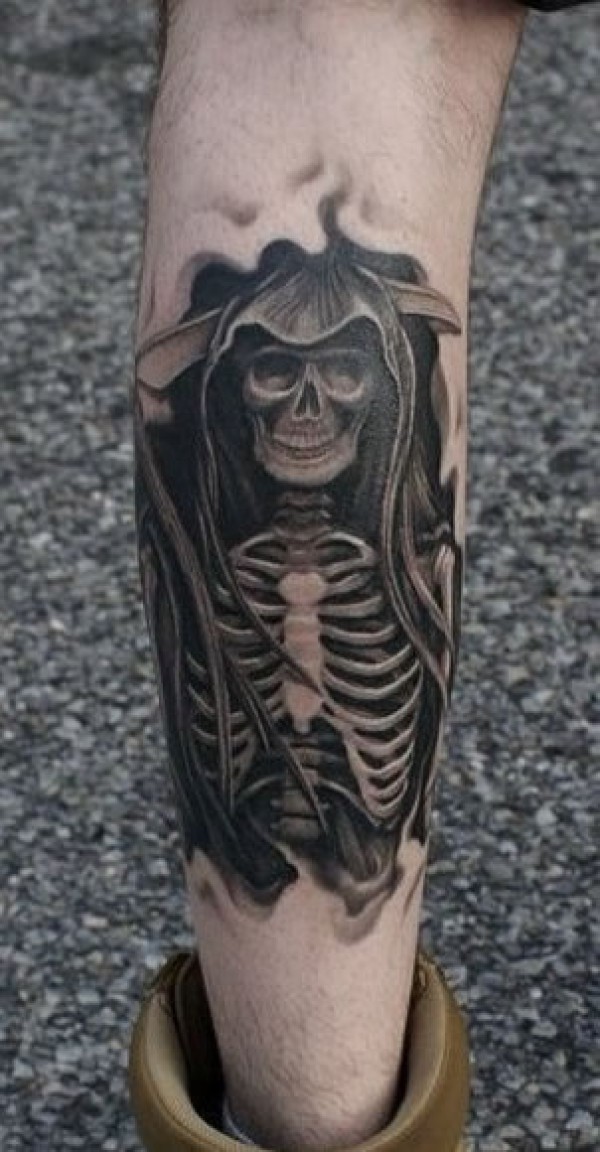 腿部死神纹身图,给你一种黑暗的气息黑色披风_腿部纹身图案大全_纹身图吧