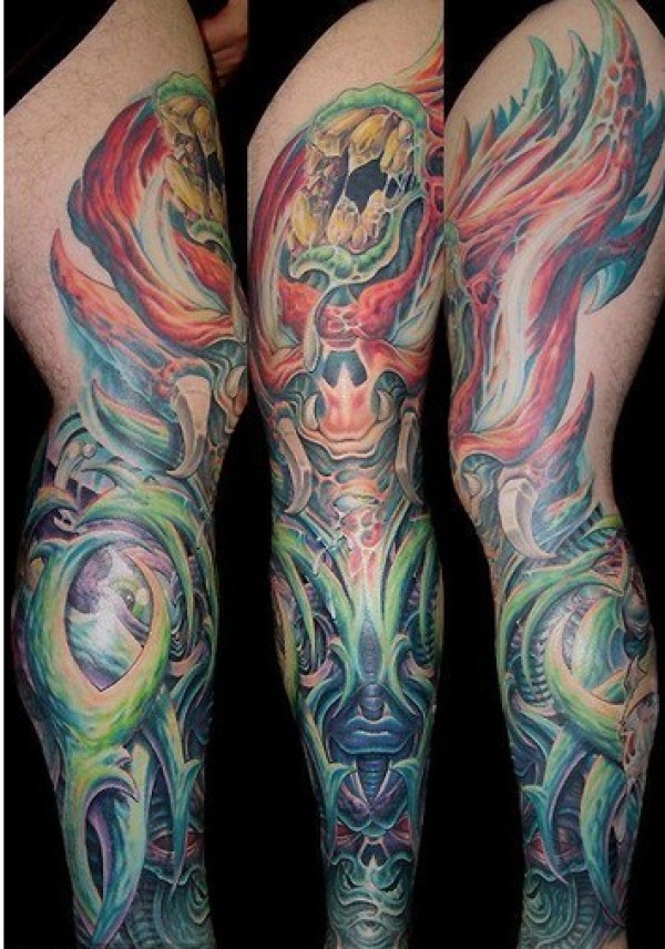 腿部彩色精灵纹身图_腿部纹身图案大全_纹身图吧