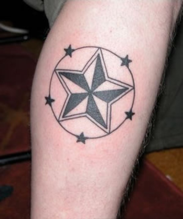 腿上的黑灰色五角星图案纹身带圈的五角星纹身_腿部纹身图案大全_纹身图吧