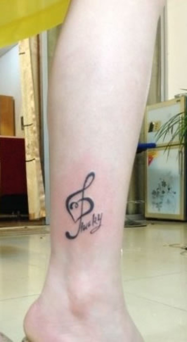 腿部音符纹身图案,各显艺术范黑色音符加字母_腿部纹身图案大全_纹身图吧