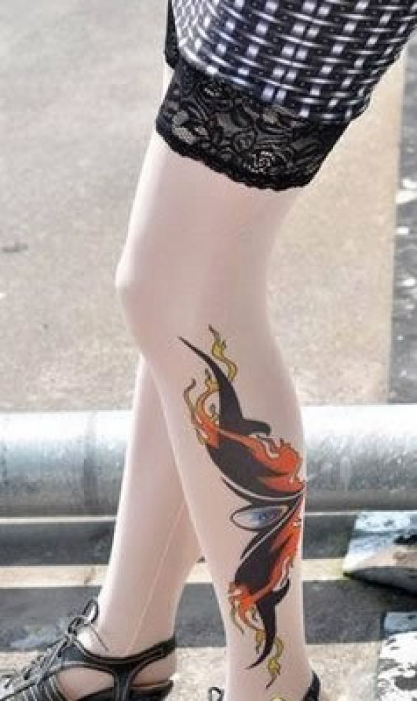 小腿上的火焰纹身图案欣赏肉色丝袜下显露出来_腿部纹身图案大全_纹身图吧
