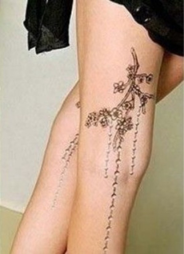 枝条上挂饰品链图案纹身喜欢装饰品的女生对这_腿部纹身图案大全_纹身图吧