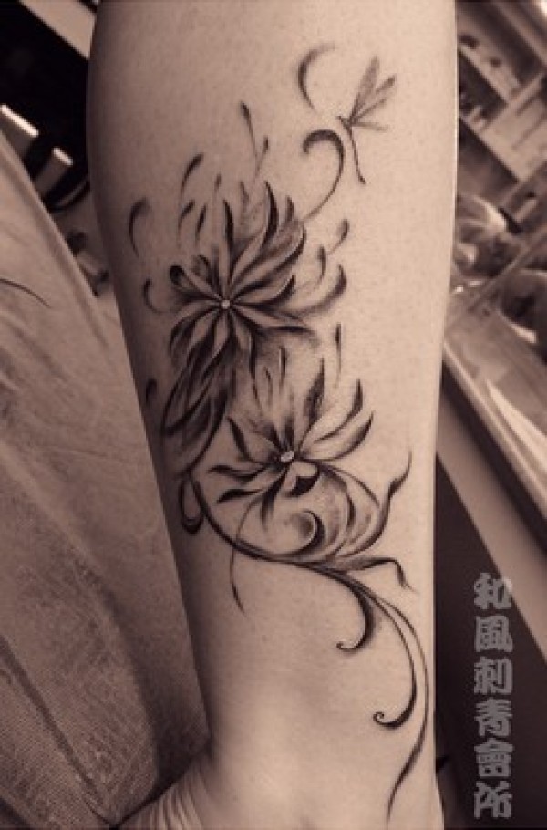几款腿部植物纹身图案推荐素色朦胧感花卉图案_腿部纹身图案大全_纹身图吧