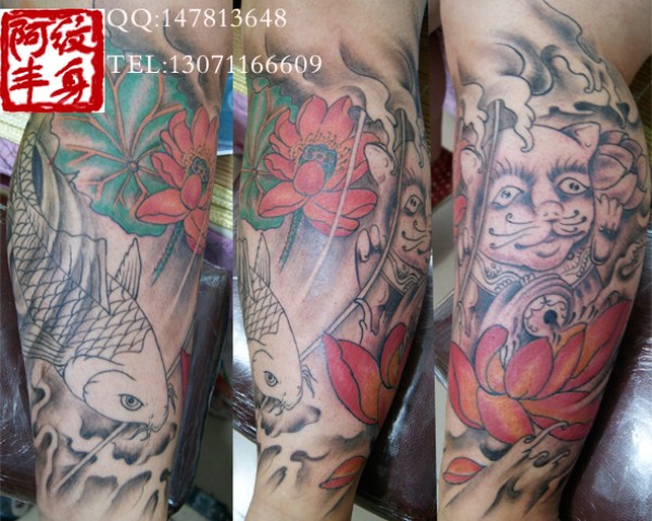 腿部蛇彩色莲花纹身图案_腿部纹身图案大全_纹身图吧