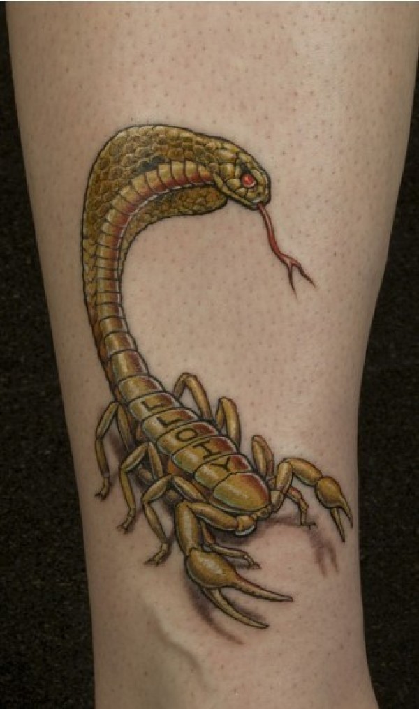 腿上的不明生物纹身蝎子与蛇的组合体,变异物_腿部纹身图案大全_纹身图吧