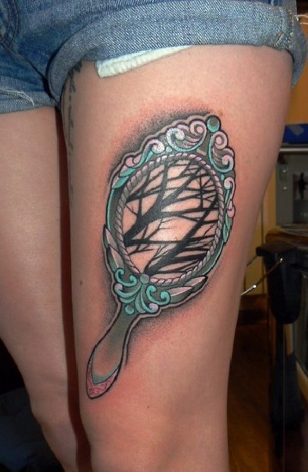 美腿上的古典铜镜图案纹身连纹身图案都是选的_腿部纹身图案大全_纹身图吧