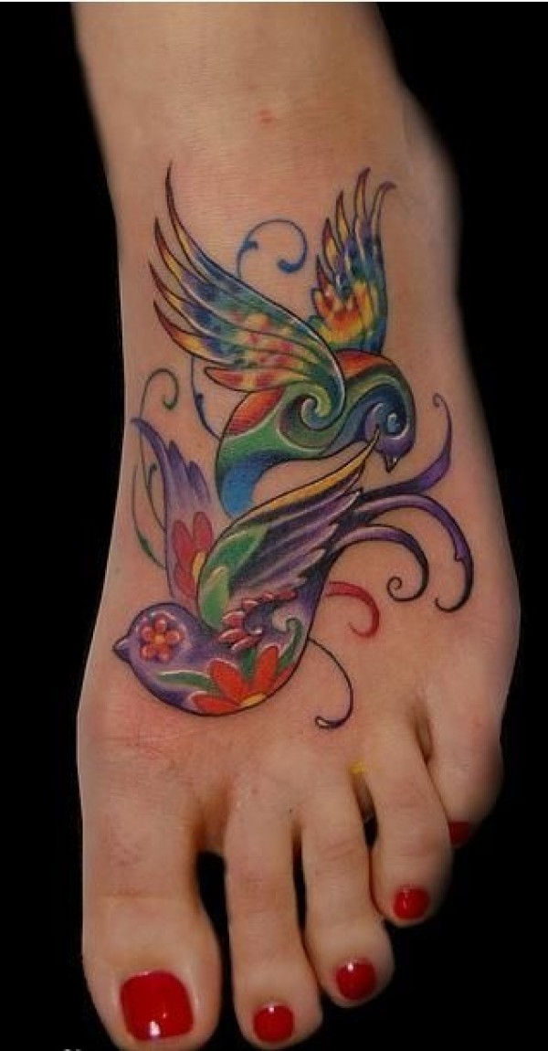 两款脚背纹身图案欣赏彩绘相思燕图案_腿部纹身图案大全_纹身图吧