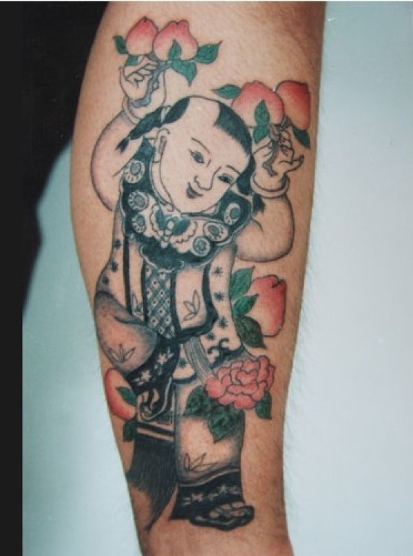 腿上的中国娃娃纹身图案以前在很多图画上看见_腿部纹身图案大全_纹身图吧