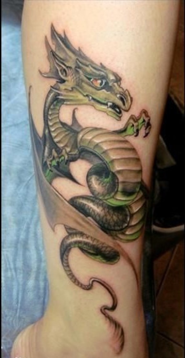 蓝绿色翼龙图案纹身虽然是幻想出来的神物,可_腿部纹身图案大全_纹身图吧
