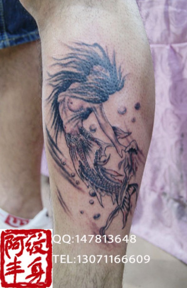 腿部美人鱼图案纹身欣赏阿丰纹身店的这款纹身_腿部纹身图案大全_纹身图吧
