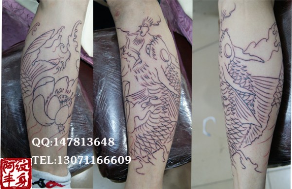 漂亮的线条纹身图案三视图这款纹身环绕整个腿_腿部纹身图案大全_纹身图吧