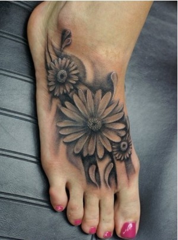 脚背的素色花朵纹身,我还是觉得彩绘的好看些_腿部纹身图案大全_纹身图吧