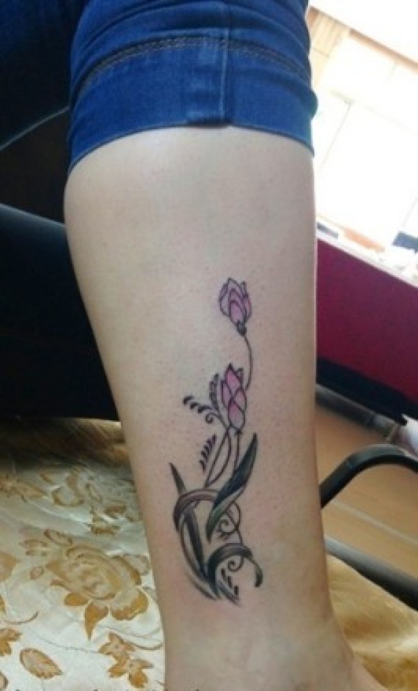 女生腿部含苞待放的荷花纹身这样的纹身给人的_腿部纹身图案大全_纹身图吧