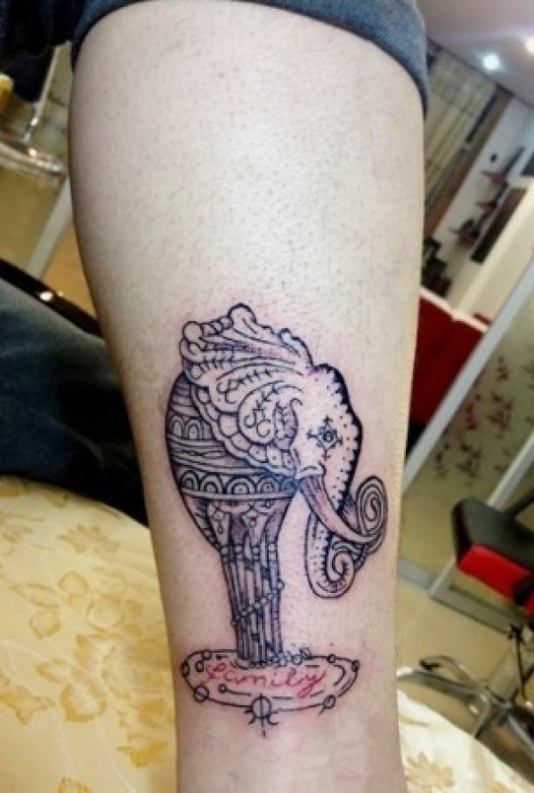 腿部的大象图案纹身这款纹身图案有点像复古味_腿部纹身图案大全_纹身图吧