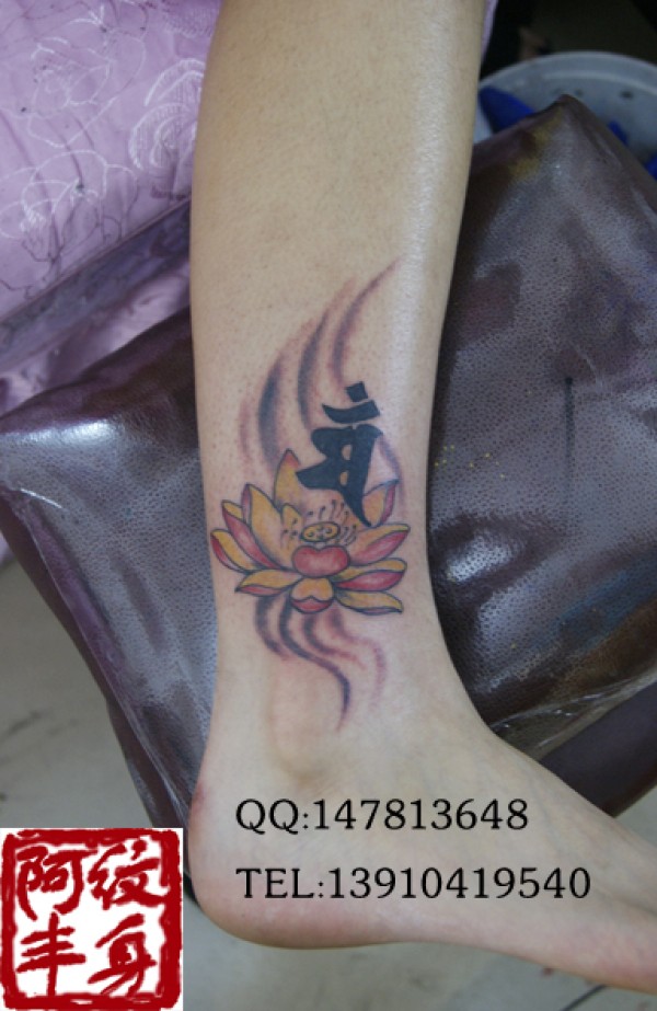 脚裸内侧彩绘荷花流云纹身这纹身流云的作用使_腿部纹身图案大全_纹身图吧