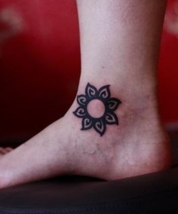 腿部黑体太阳花图腾纹身_腿部纹身图案大全_纹身图吧