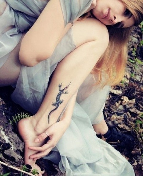 小腿上的壁虎纹身,别的女生看到会害怕吗_腿部纹身图案大全_纹身图吧