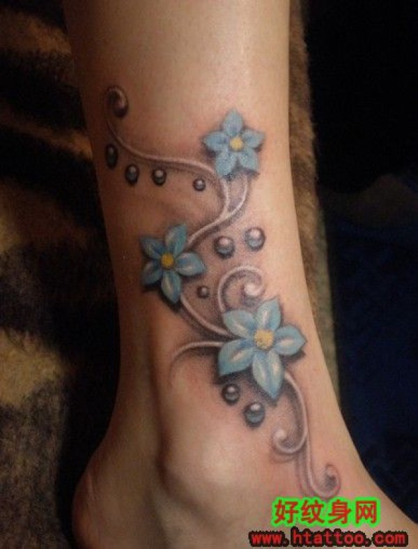 脚裸纹身处珠花纹身,穿裙子就可以尽显风采哦_腿部纹身图案大全_纹身图吧