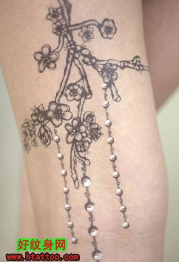 女生腿部桃花纹身_腿部纹身图案大全_纹身图吧