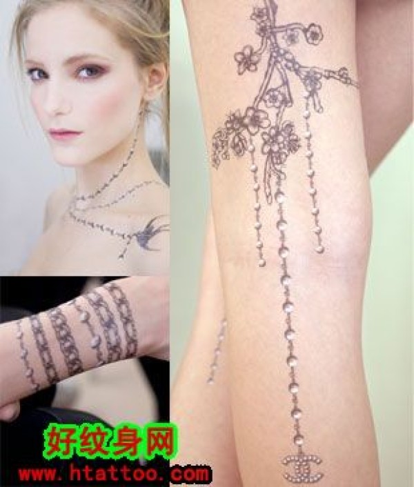 女生腿部颈部手臂珍珠项链纹身_腿部纹身图案大全_纹身图吧