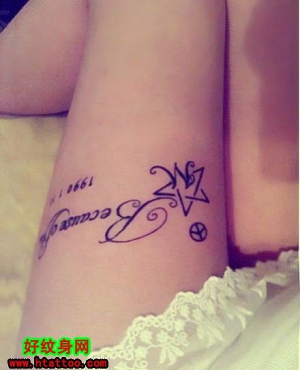 女生大腿图腾英文纹身_腿部纹身图案大全_纹身图吧