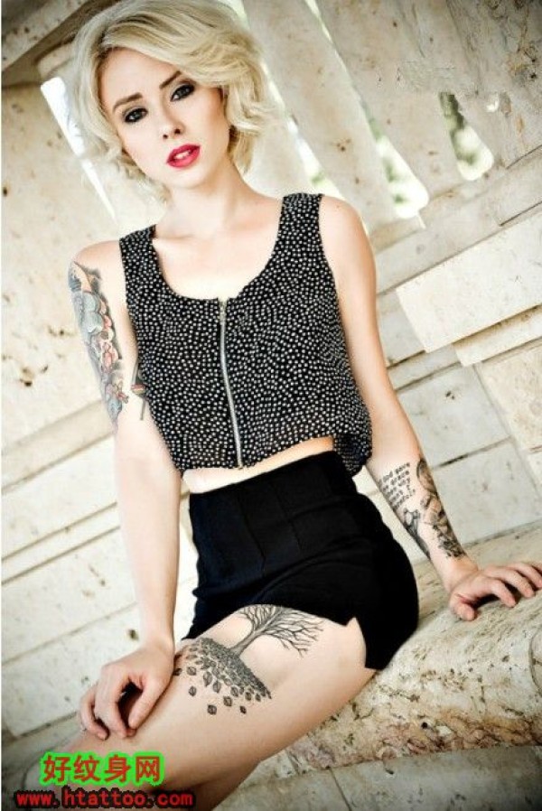 女生腿部树木纹身_腿部纹身图案大全_纹身图吧