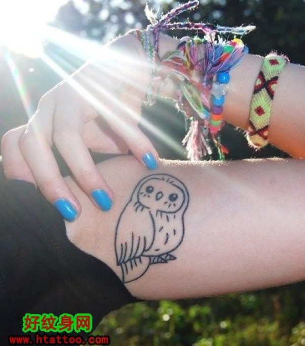 女生小腿部猫头鹰纹身_腿部纹身图案大全_纹身图吧