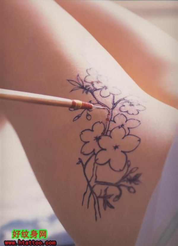 女生腿部梅花纹身_腿部纹身图案大全_纹身图吧