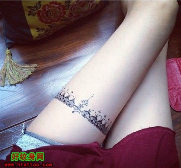 美女腿部蕾丝纹身图案_腿部纹身图案大全_纹身图吧