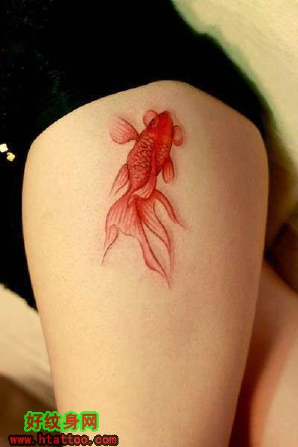 女生腿部可爱金鱼性感彩色纹身_腿部纹身图案大全_纹身图吧