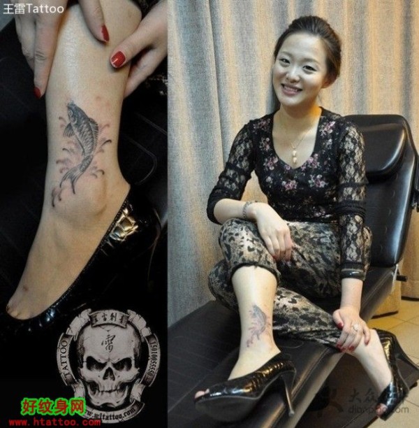 美女叫上的黑白鲫鱼纹身王雷刺青作品_腿部纹身图案大全_纹身图吧