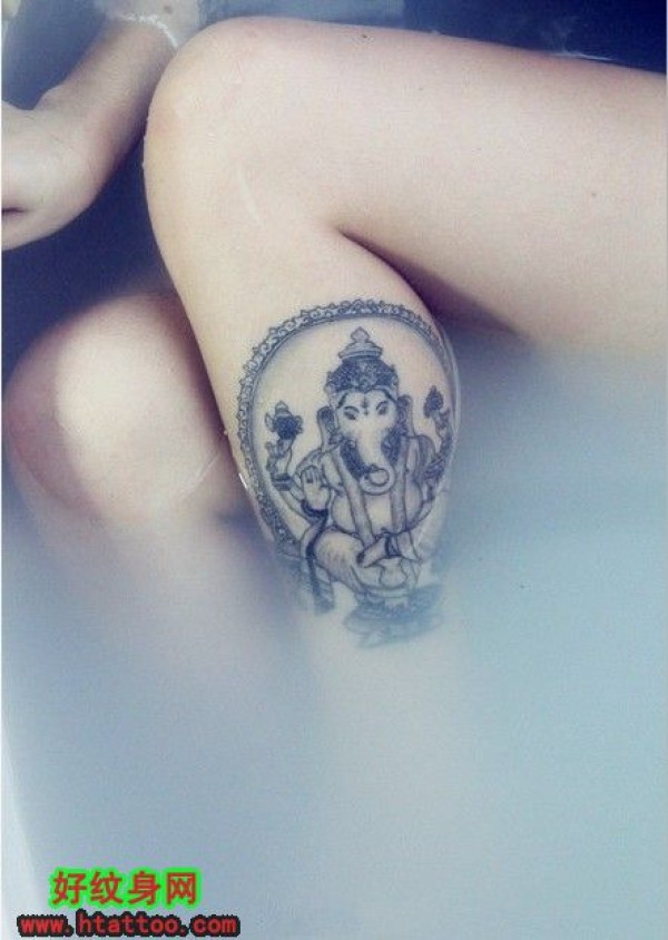 女生腿部大象图腾另类欧美纹身_腿部纹身图案大全_纹身图吧