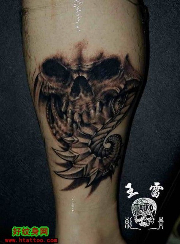 王雷黑白灰作品中的黑白骷髅纹身图片_腿部纹身图案大全_纹身图吧