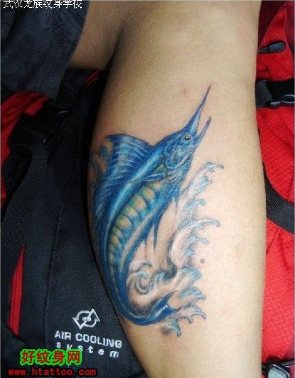 这个蓝色纹身的主角是什么鱼呢_腿部纹身图案大全_纹身图吧