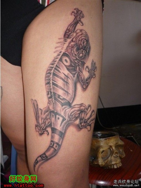 一大老爷们腿上的蜥蜴纹身图案_腿部纹身图案大全_纹身图吧