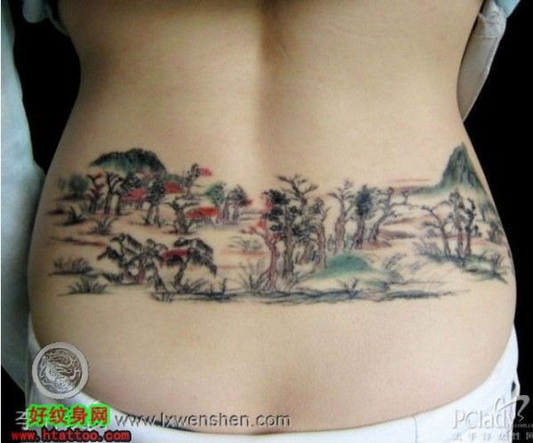 很有艺术感的山水画纹身中国的风格_腿部纹身图案大全_纹身图吧