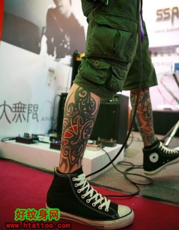 很花很花的花小腿纹身,蛮有个性的_腿部纹身图案大全_纹身图吧