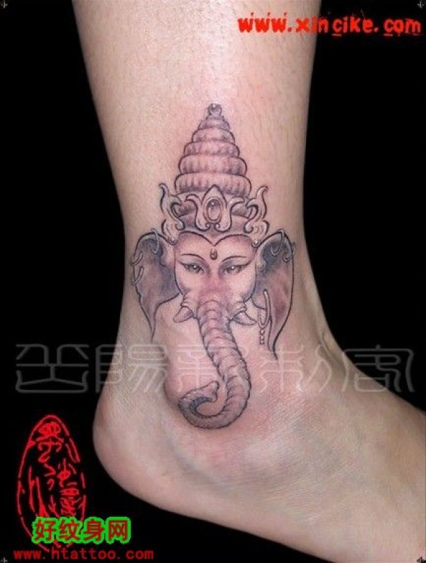 脚腕上的象神,著名纹身师岳阳新刺客作品_腿部纹身图案大全_纹身图吧