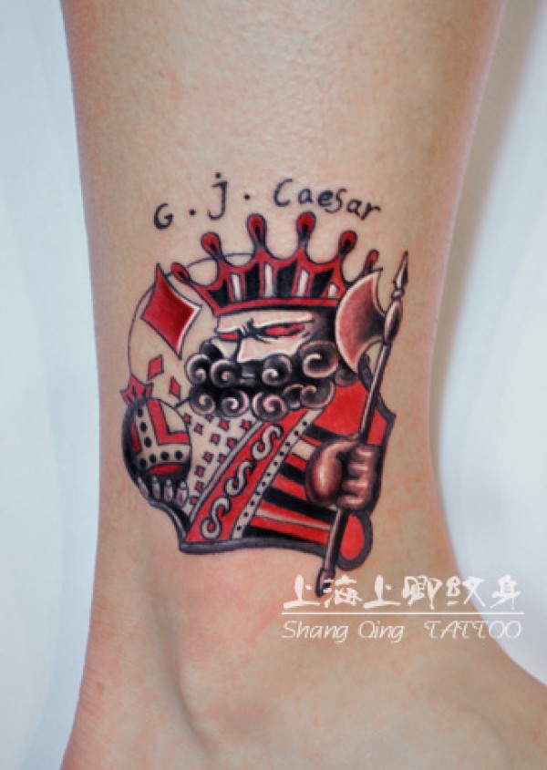 oldschool风格老K纹身_腿部纹身图案大全_纹身图吧