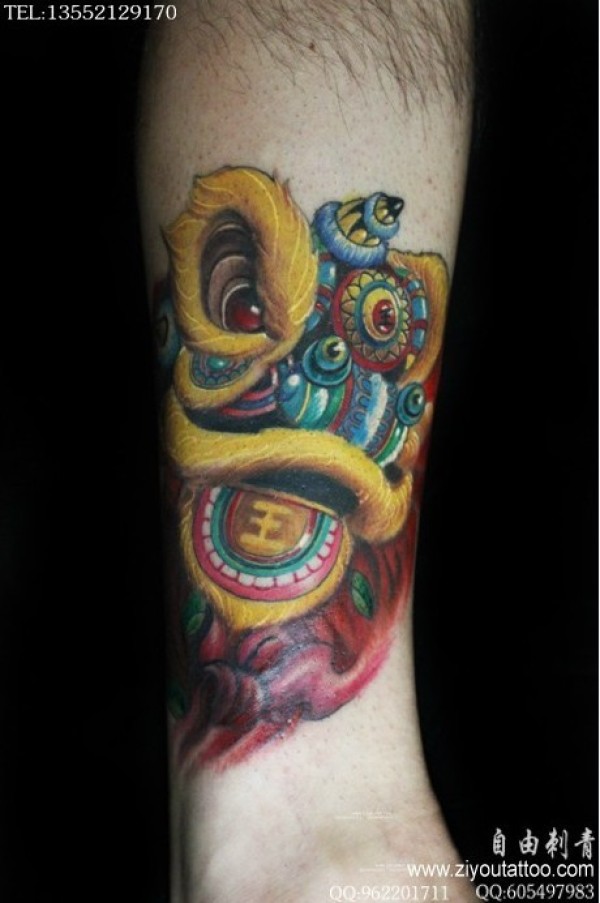 唐狮_腿部纹身图案大全_纹身图吧