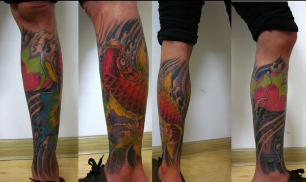 做的很细的鲤鱼纹身图案包小腿_腿部纹身图案大全_纹身图吧
