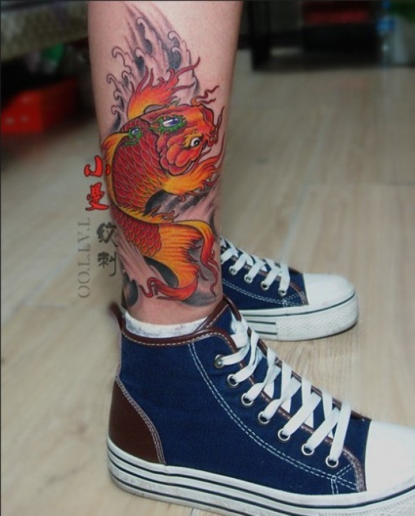 天津小曼的鲤鱼作品_腿部纹身图案大全_纹身图吧
